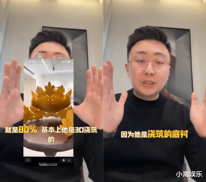随后网上就有所谓“行业内东说念主士”说,张凯毅的“纯手工”黄金凤冠光工费就要20万。而没念念到一下子激愤了瞎想师圈子。不少瞎想师跳出来打假,实锤张凯毅撒谎!凤冠即是个机器3D打印的。并非手责任品。网友也质疑:这个说20万工费的怕不是张凯毅的“托儿”吧。