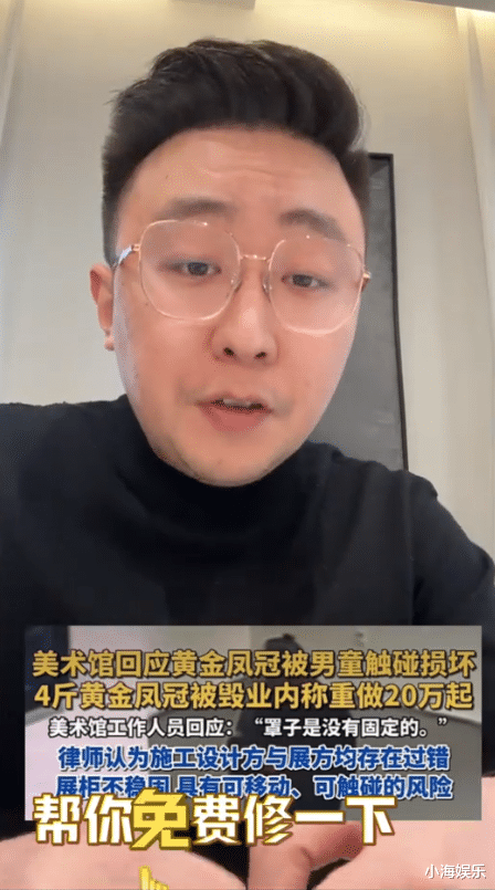 随后,该工艺师喊话张凯毅,我方不错帮她免费维修黄金凤冠。但愿不要再说很难建立,很值钱了。