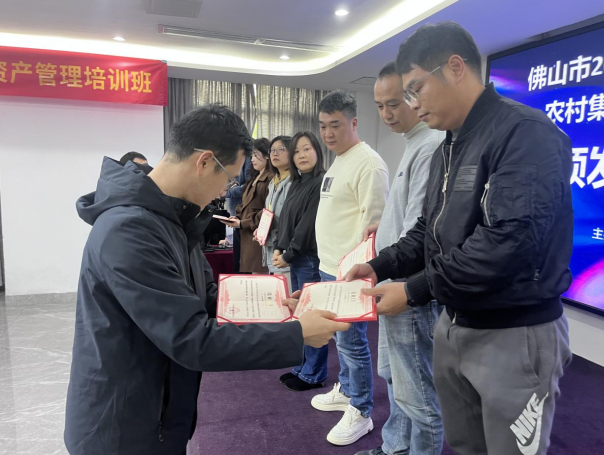 佛山市农业农村局代表李典为优秀学员颁发结业文凭。